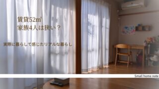 賃貸52㎡で家族4人暮らしは狭い?実際に暮らして感じたリアルな生活をまとめました。小さい家でも快適に暮らすための工夫やメリット・デメリットを、実体験をもとに紹介します。