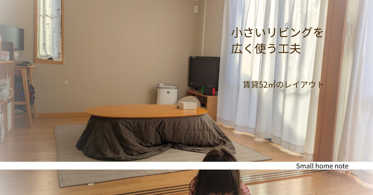 今日は、賃貸52㎡のわが家のリビングのレイアウトと、